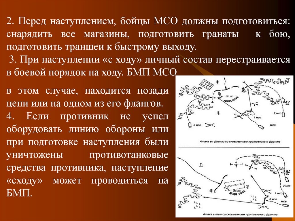 МСО обороняет по фронту до 100 м, и в глубину до 50м11. МСВ и МСО В НАСТУПЛЕНИИ