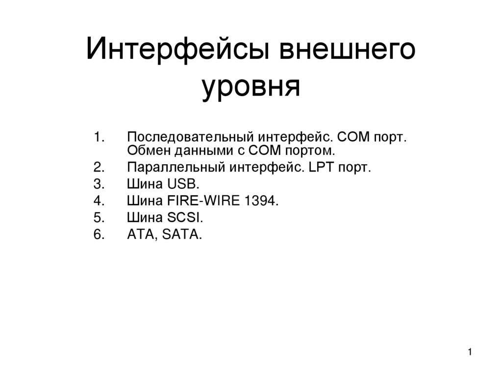 Для связи с внешними периферийными устройствами предусмотреныпоследовательные и параллельные порты. В последнее время