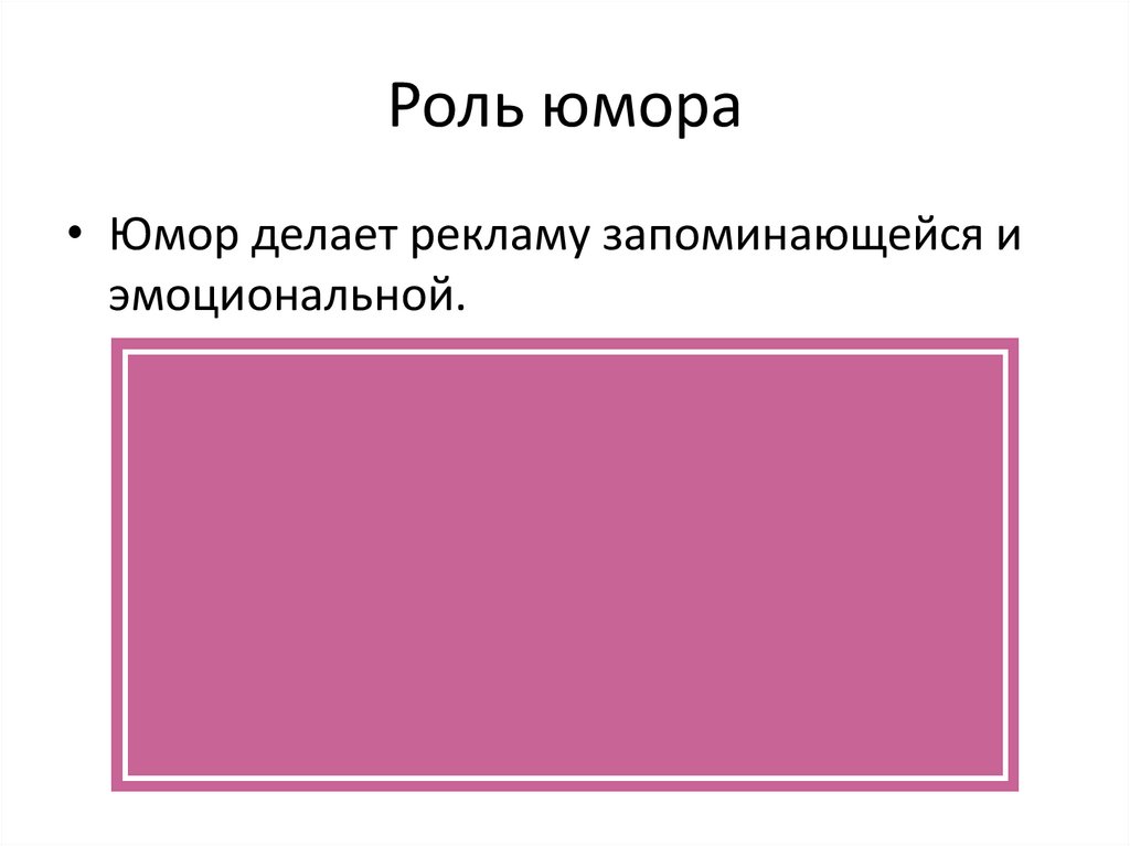 Роль юмора• Юмор делает рекламу запоминающейся и