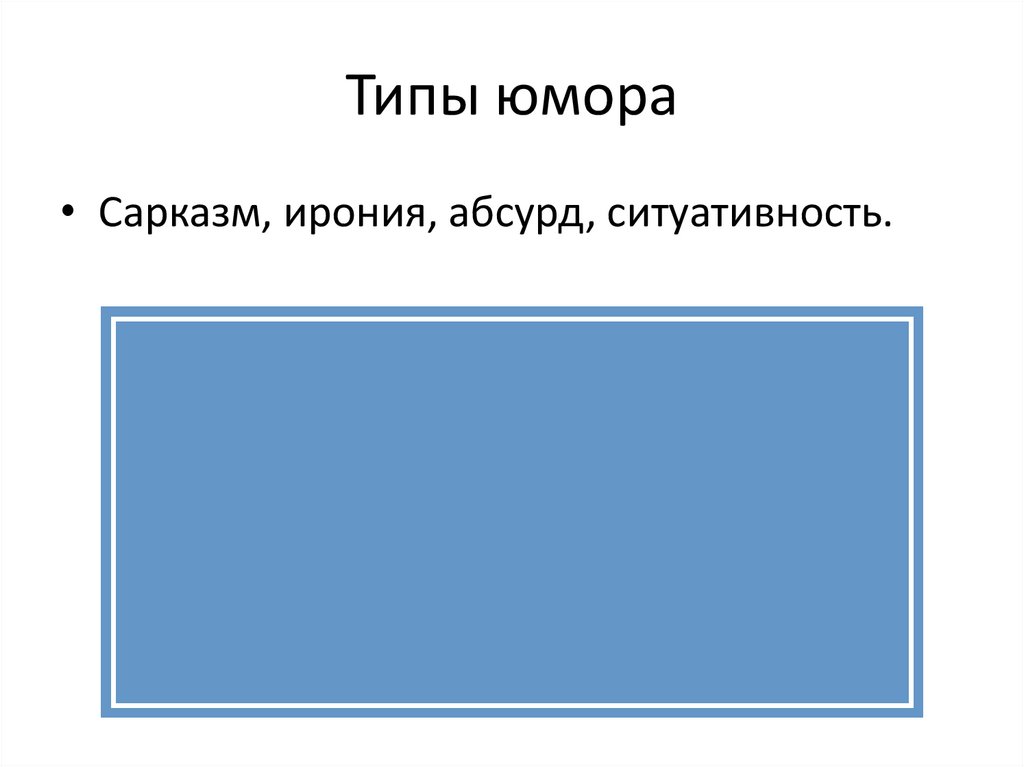 Типы юмора• Сарказм, ирония, абсурд, ситуативность.