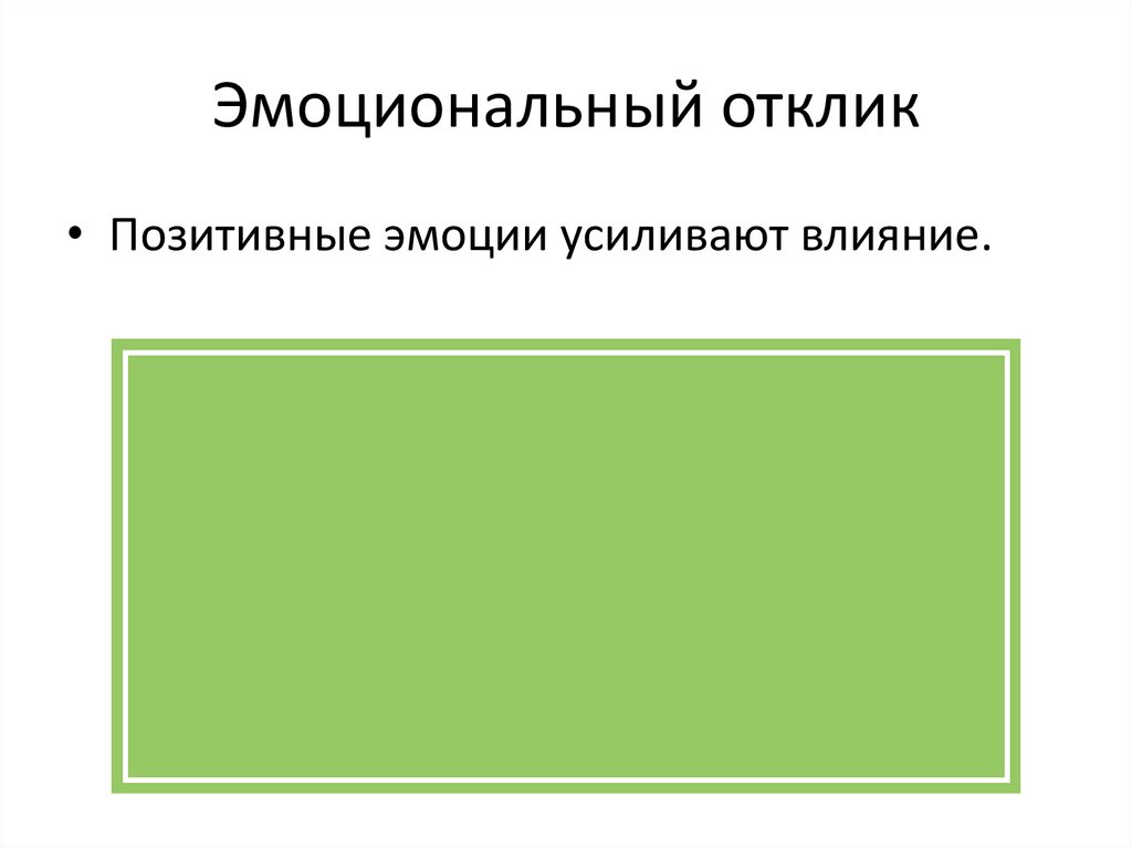 Эмоциональный отклик• Позитивные эмоции усиливают влияние.