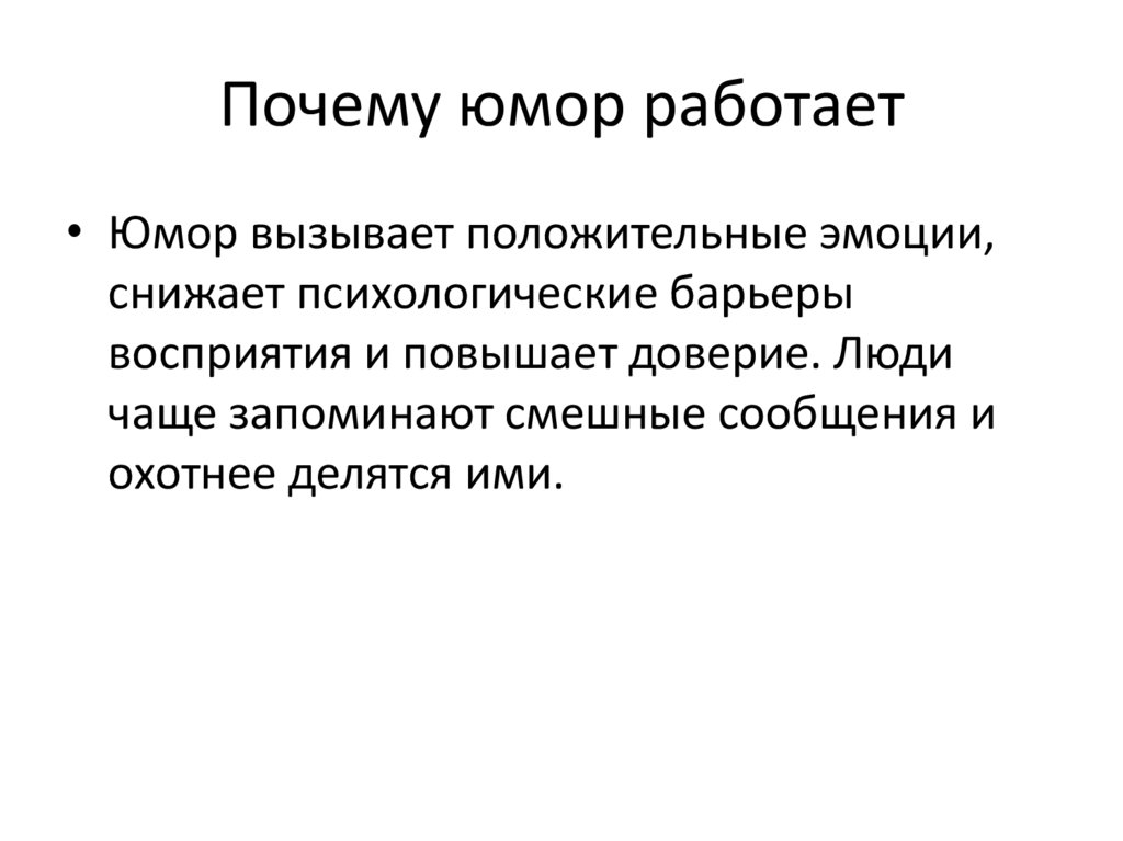 Почему юмор работает• Юмор вызывает положительные эмоции,