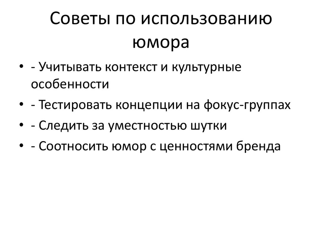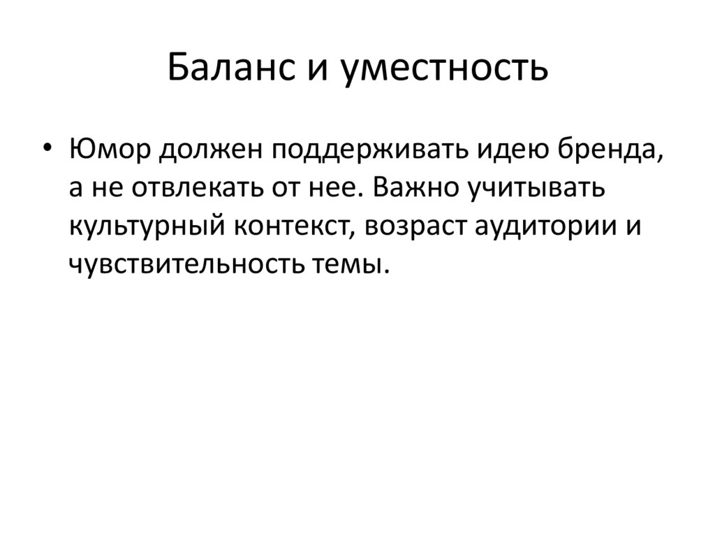 Баланс и уместность• Юмор должен поддерживать идею бренда,