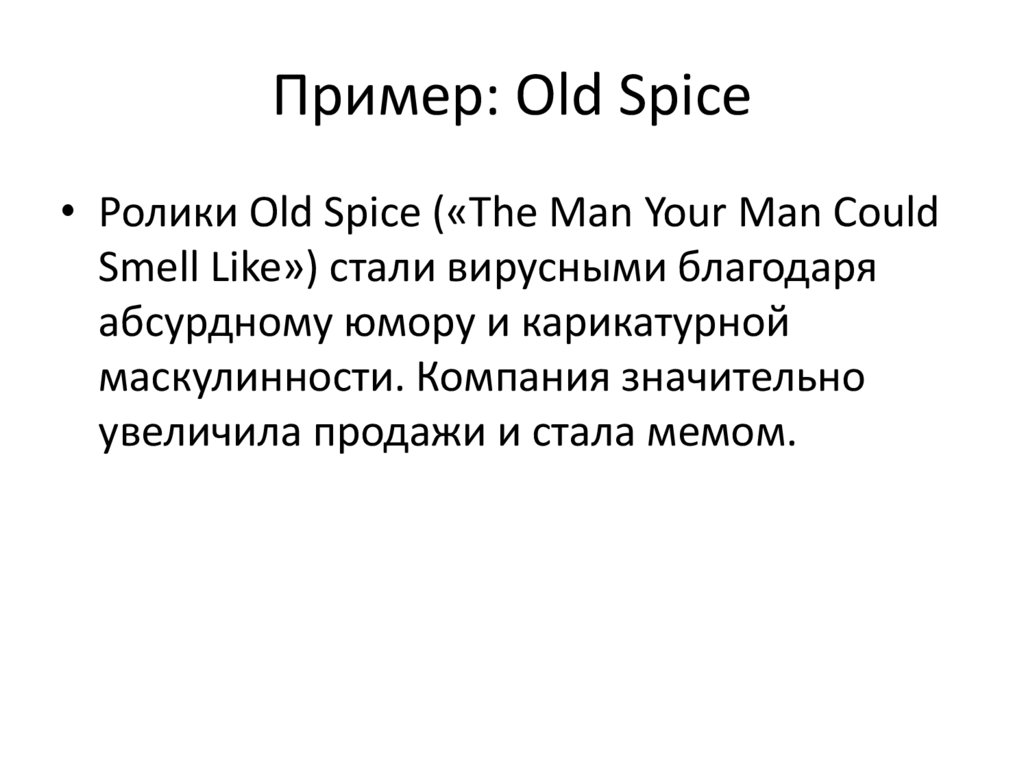 Пример: Old Spice• Ролики Old Spice («The Man Your Man Could