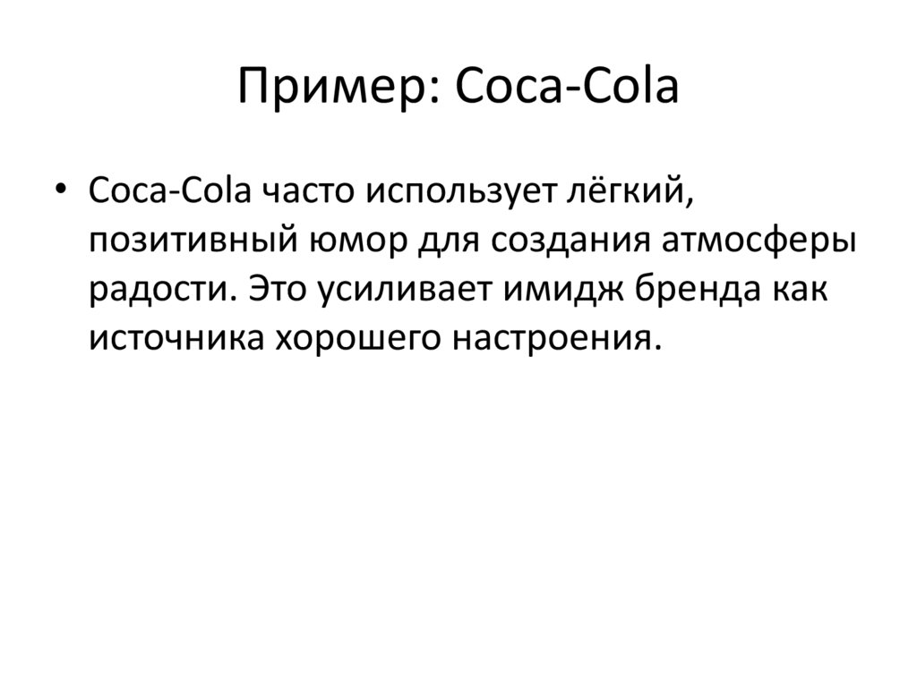 Пример: Coca-Cola• Coca-Cola часто использует лёгкий,