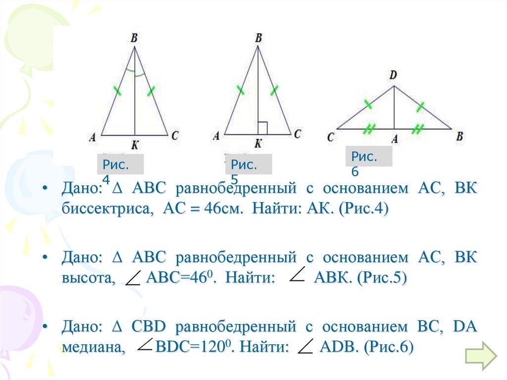 высота, АВС=460. Найти: АВК. (Рис.5)