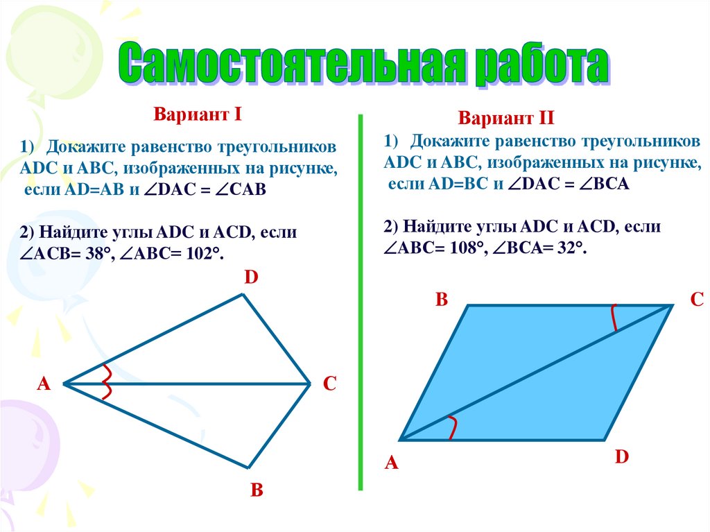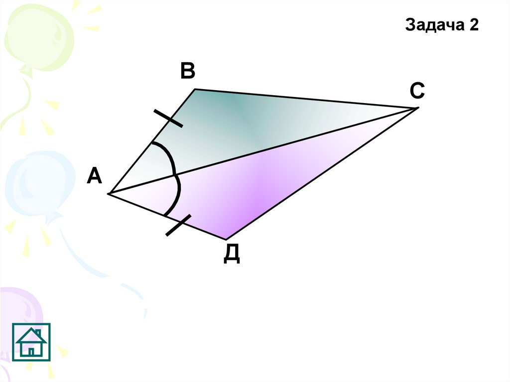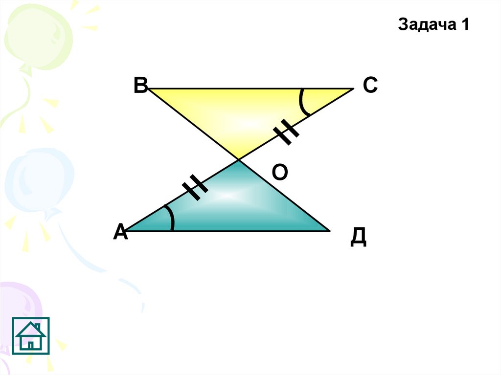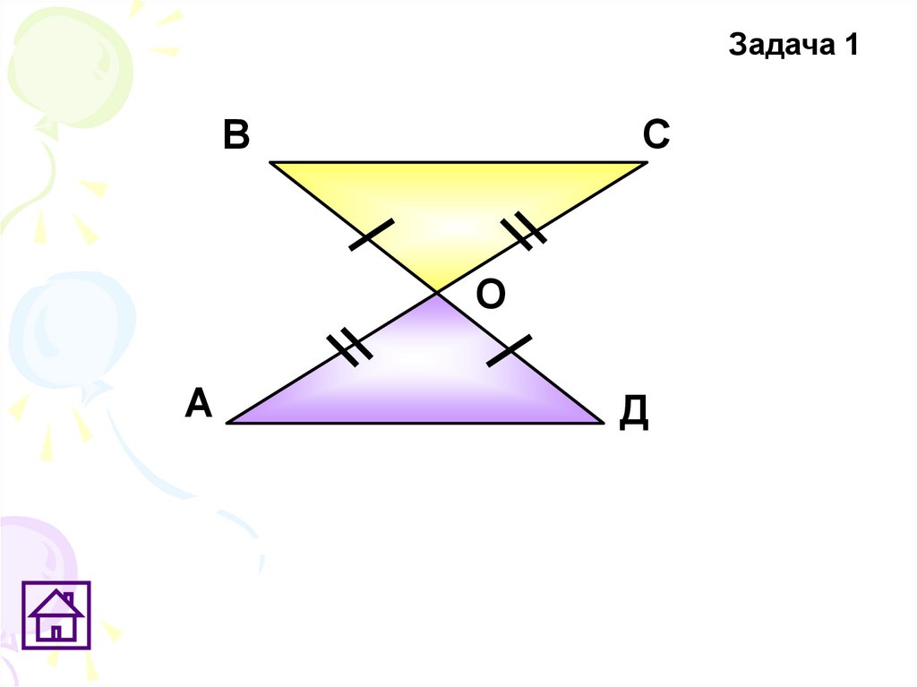 Решение задач.2. Вспомнить признаки равенства треугольников