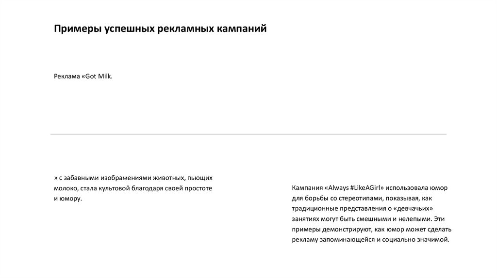 примеры демонстрируют, как юмор может сделать