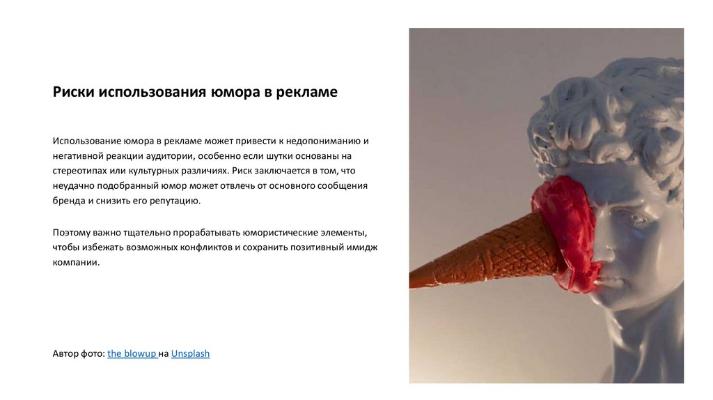 Риски использования юмора в рекламеИспользование юмора в рекламе может привести к недопониманию и