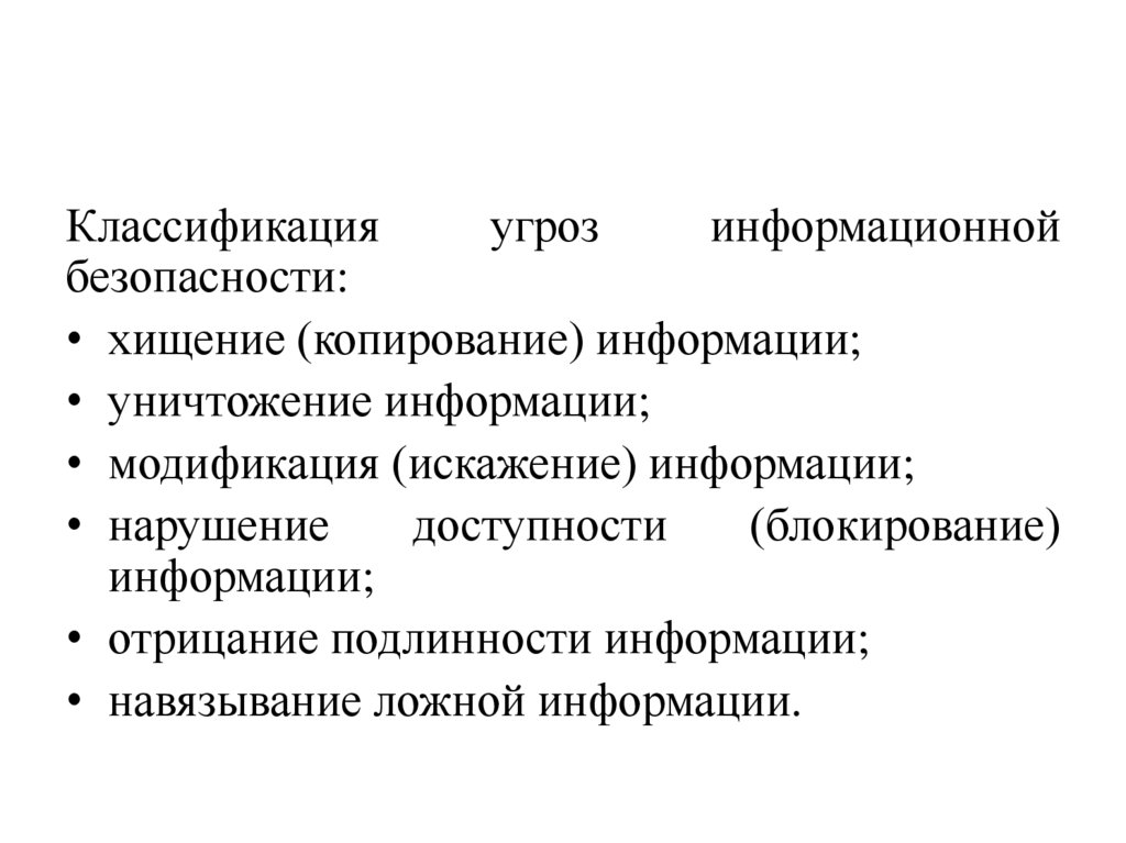 • модификация (искажение) информации;
