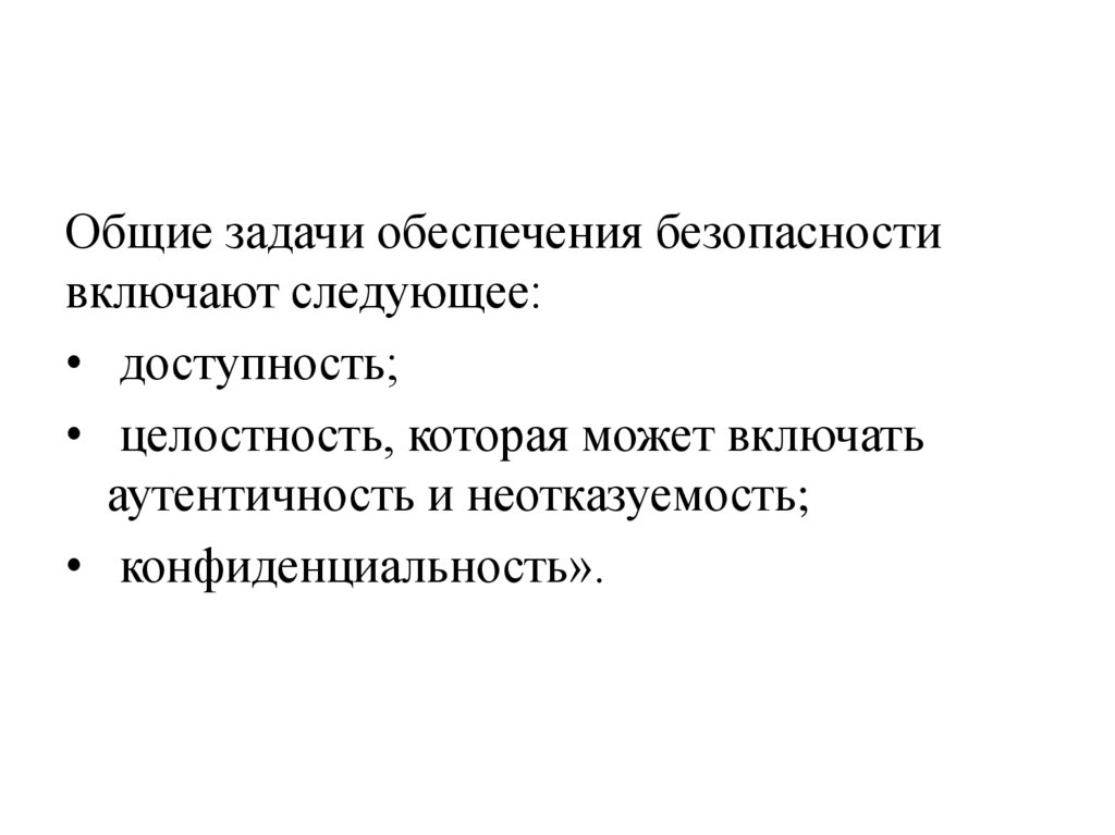 Общие задачи обеспечения безопасностивключают следующее: