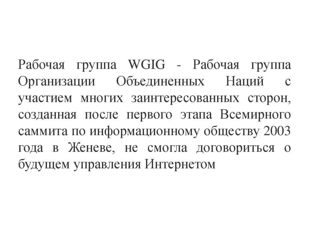 Рабочая группа WGIG - Рабочая группаОрганизации