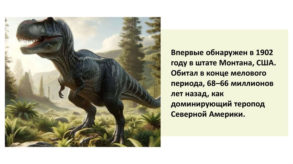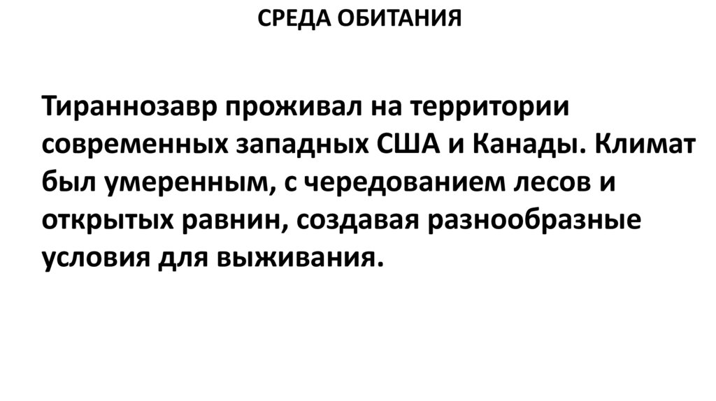 СРЕДА ОБИТАНИЯТираннозавр проживал на территории