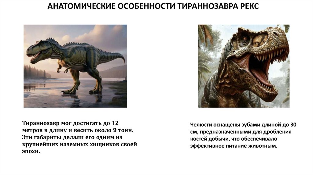 АНАТОМИЧЕСКИЕ ОСОБЕННОСТИ ТИРАННОЗАВРА РЕКСТираннозавр мог достигать до 12