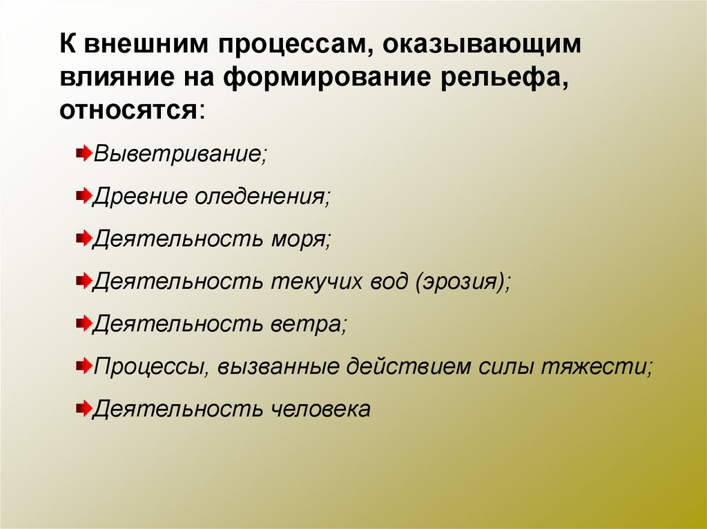 К внешним процессам, оказывающимвлияние на формирование рельефа,