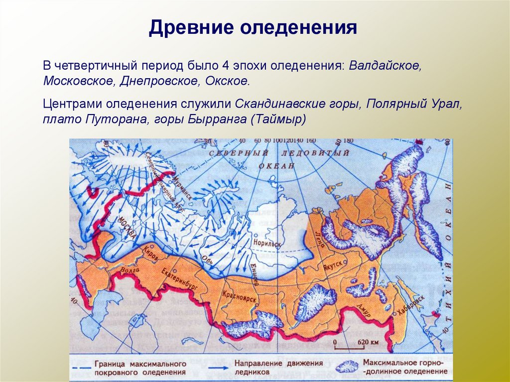 Центрами оледенения служили Скандинавские горы, Полярный Урал,