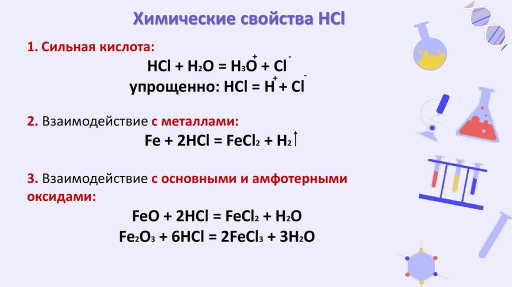 Химические свойства HCl1. Сильная кислота: