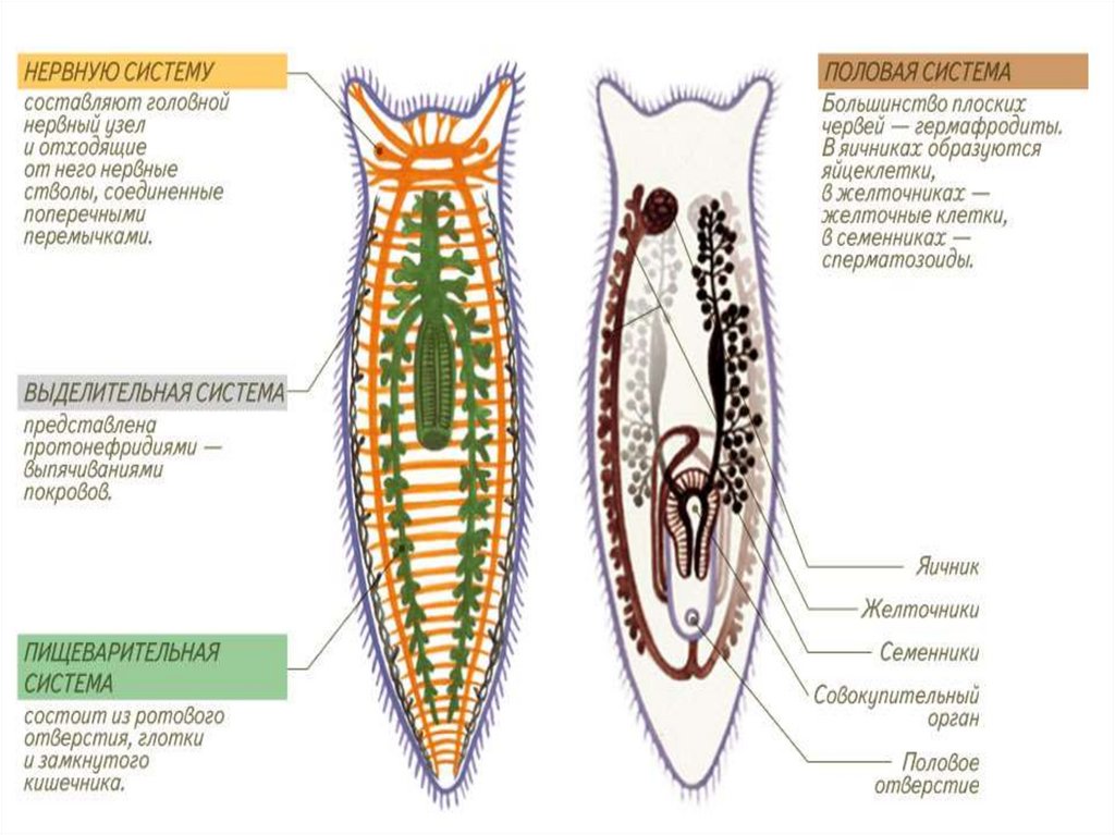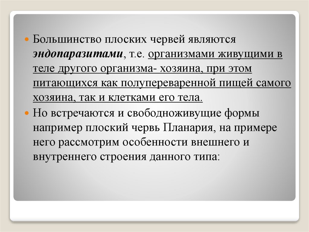 Большинство плоских червей являютсяэндопаразитами, т.е. организмами живущими в