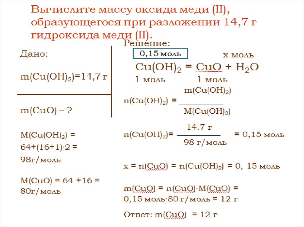 Решение расчетных задач поравнениям химических реакций.