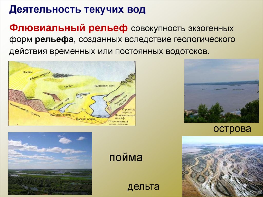 Деятельность текучих водФлювиальный рельеф совокупность экзогенных
