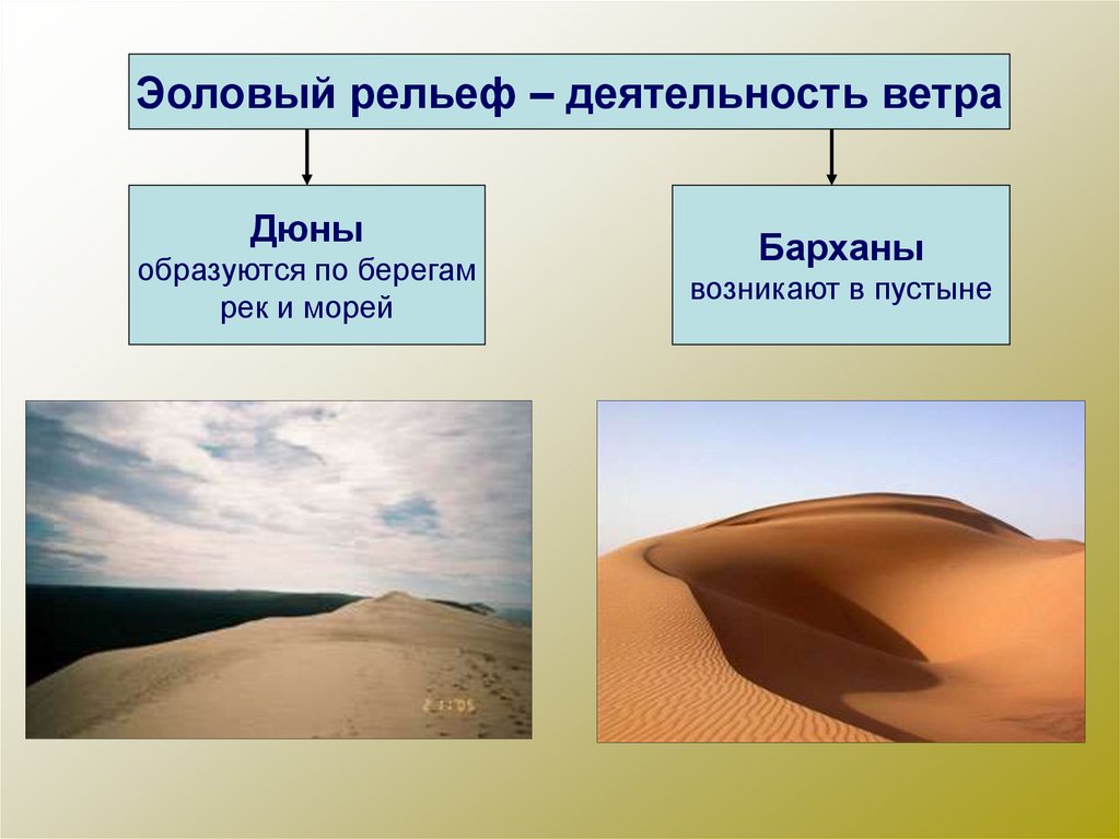 Эоловый рельеф – деятельность ветраДюны