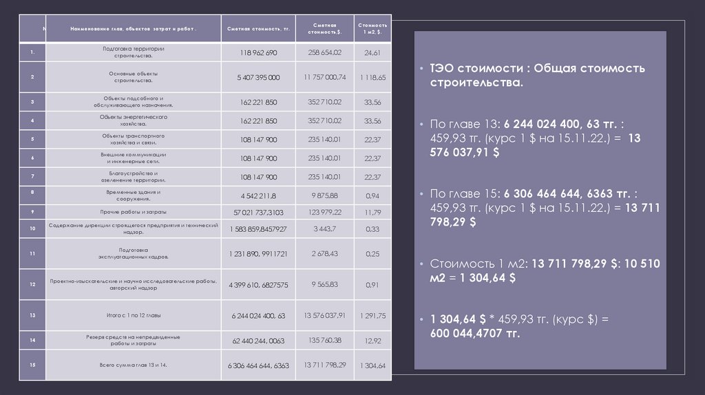 • ТЭО стоимости : Общая стоимость