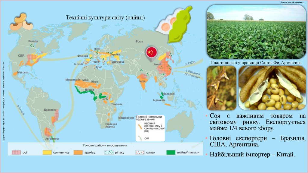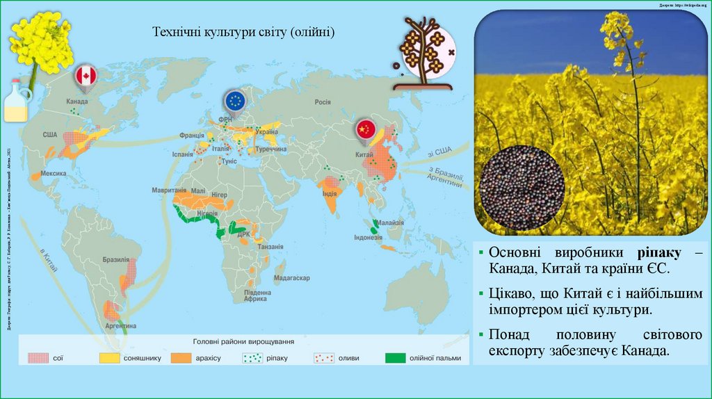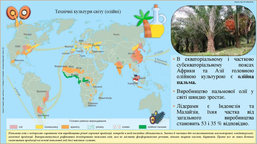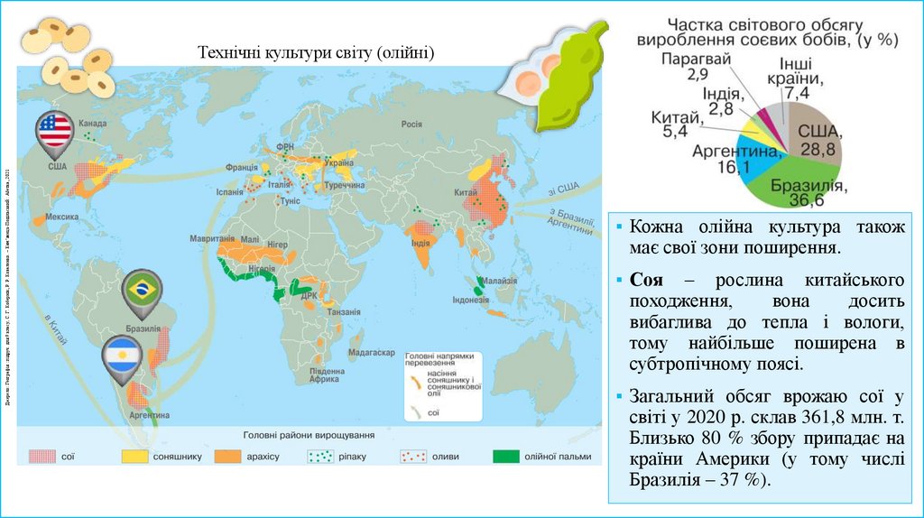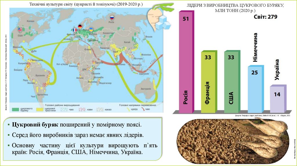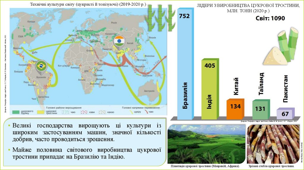 Технічні культури світу (цукристі й тонізуючі) (2019-2020 р.)Джерело: Географія : підруч. для 9 класу, С. Г. Кобернік, Р. Р. Коваленко. – Кам’янець-Подільський : Абетка, 2021