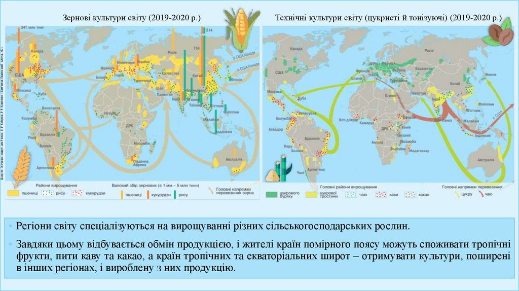 Регіони світу спеціалізуються на вирощуванні різних сільськогосподарських рослин.