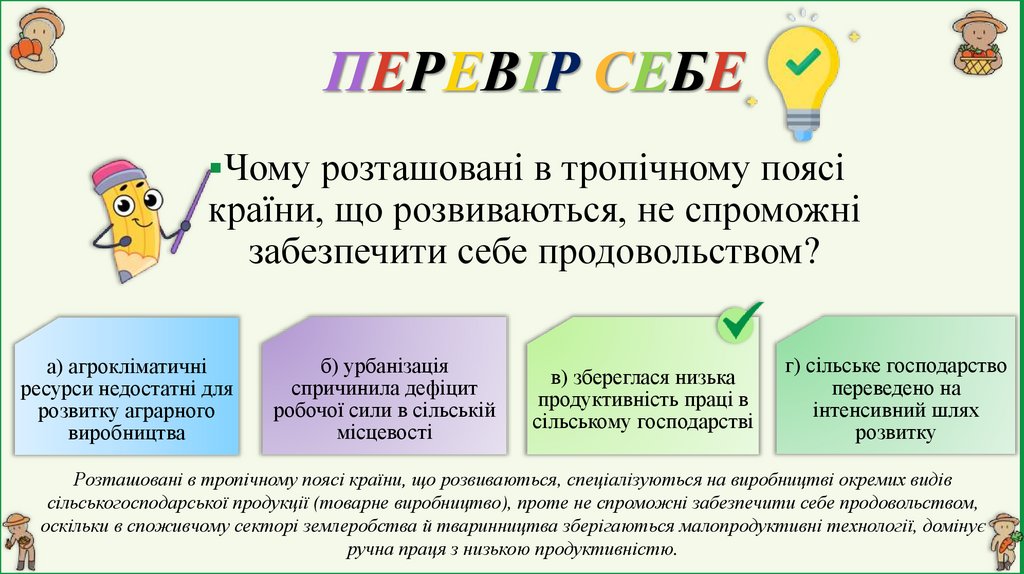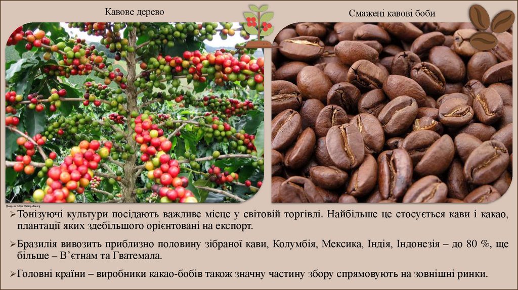фрукти, пити каву та какао, а країн тропічних та екваторіальних широт – отримувати культури, поширені