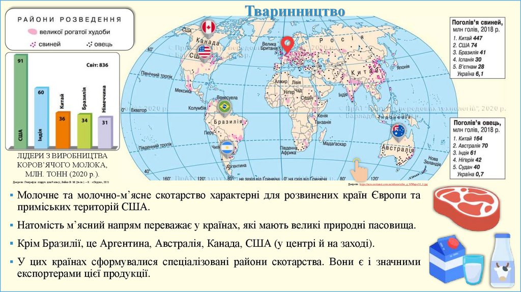 високопродуктивних природних пасовищ (розташовані в природних зонах саван, степу (пампи) й лісостепу).