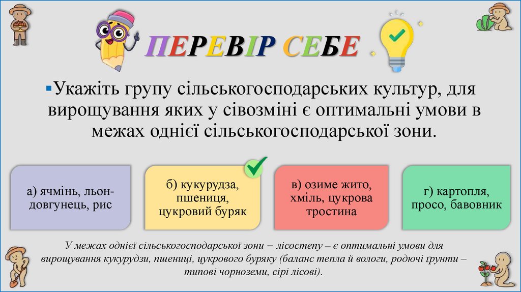 За спеціалізацією рослинництва можна визначити розташування країн у північній частині