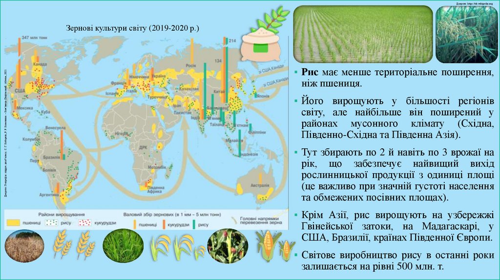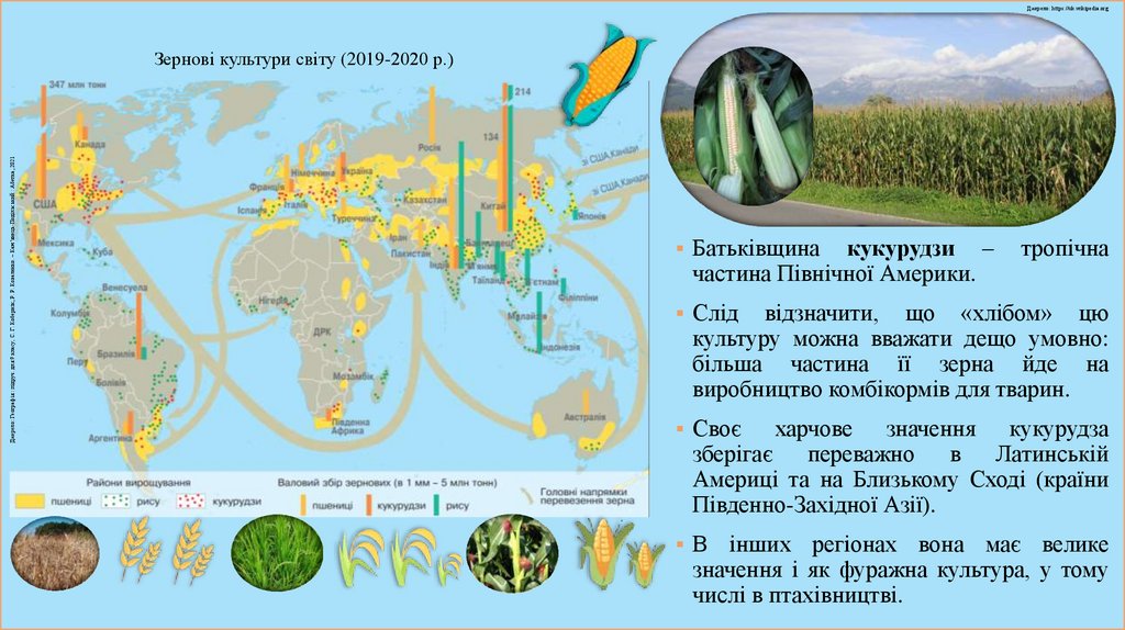 Зернові культури світу (2019-2020 р.)Як і в Україні, найбільше значення в
