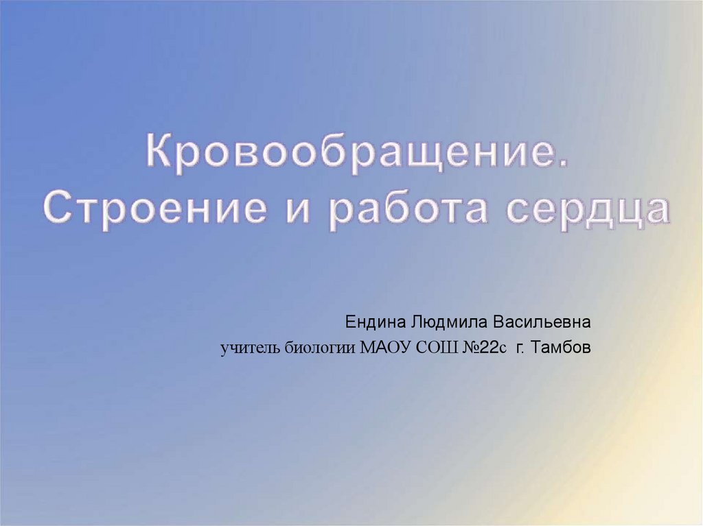 Ендина Людмила Васильевнаучитель биологии МАОУ СОШ №22с г. Тамбов