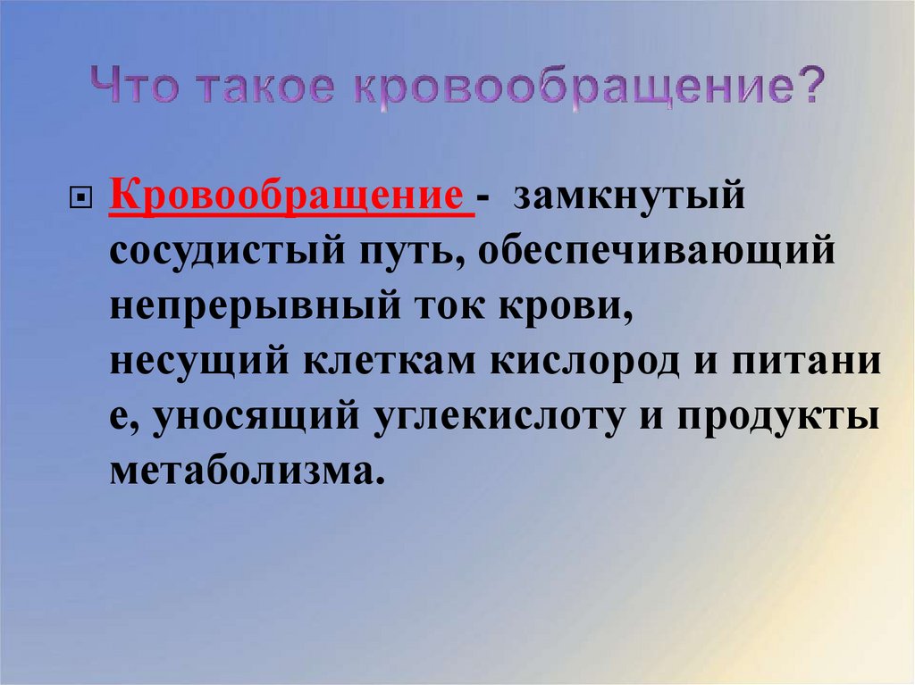 Узнать что такое кровообращение, кругикровообращения;
