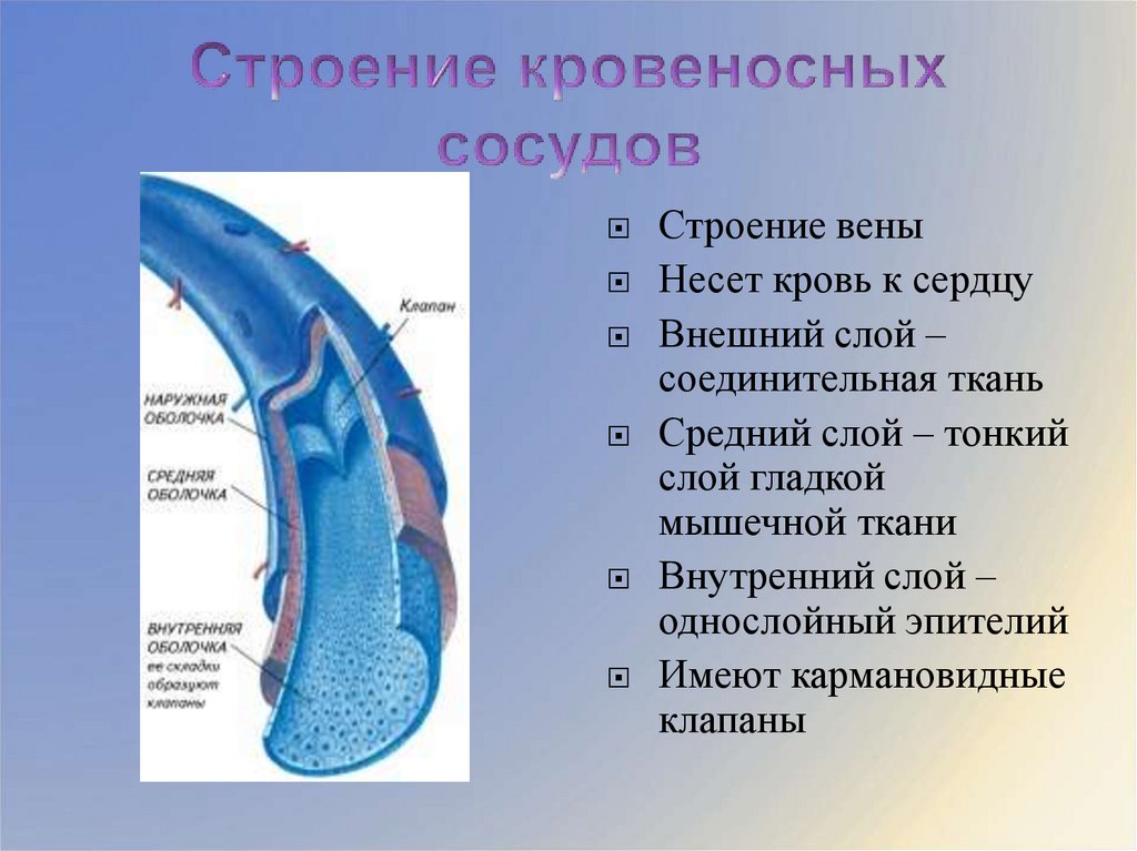 Строение веныНесет кровь к сердцу