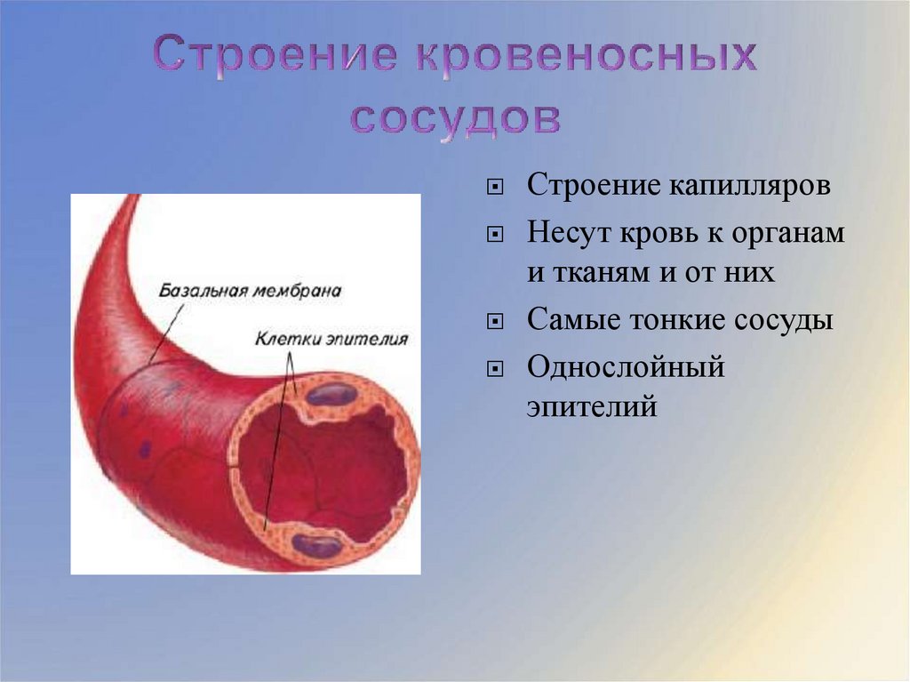 Строение капилляровНесут кровь к органам
