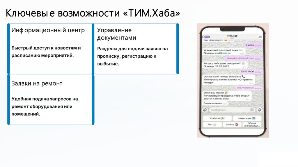 Кл ючевы е возможности «ТИМ.Хаба»Инф ормационны й центр