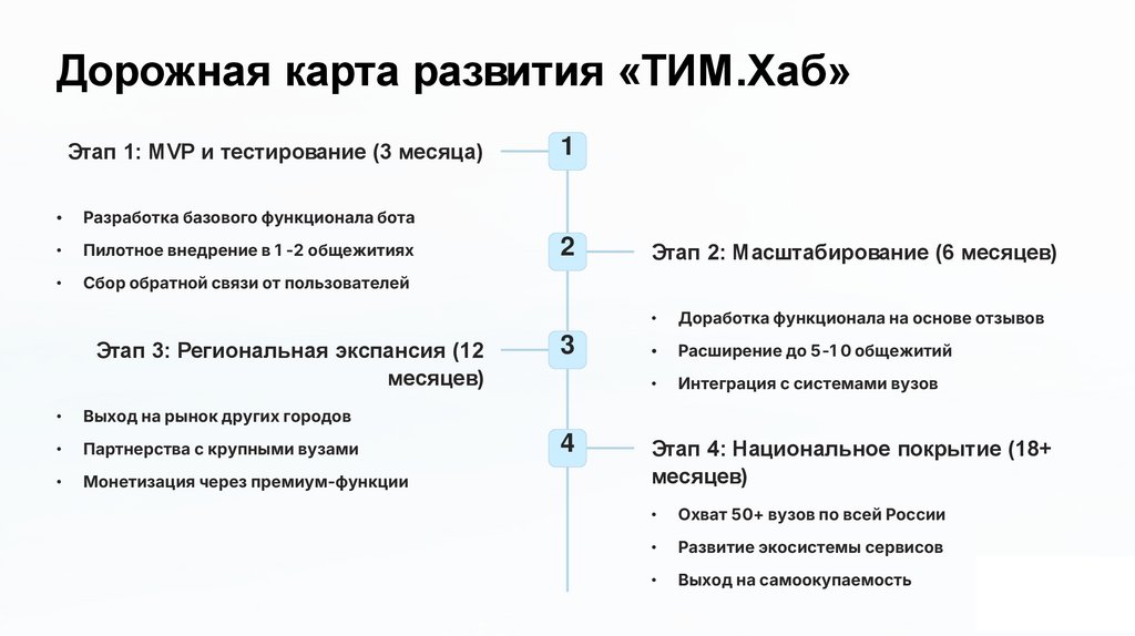 Дорожная карта развития «ТИМ.Хаб»Этап 1: MVP и тестирование (3 месяца)