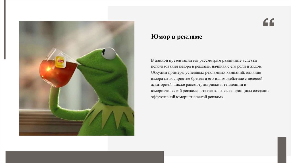 Юмор в рекламеВ данной презентации мы рассмотрим различные аспекты