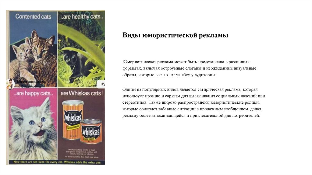 Виды юмористической рекламыЮмористическая реклама может быть представлена в различных