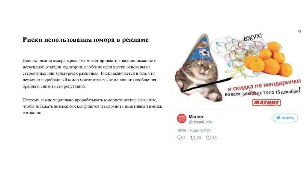 Риски использования юмора в рекламеИспользование юмора в рекламе может привести к недопониманию и