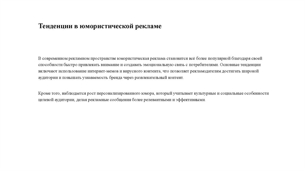 Тенденции в юмористической рекламеВ современном рекламном пространстве юмористическая реклама становится всё более популярной благодаря своей