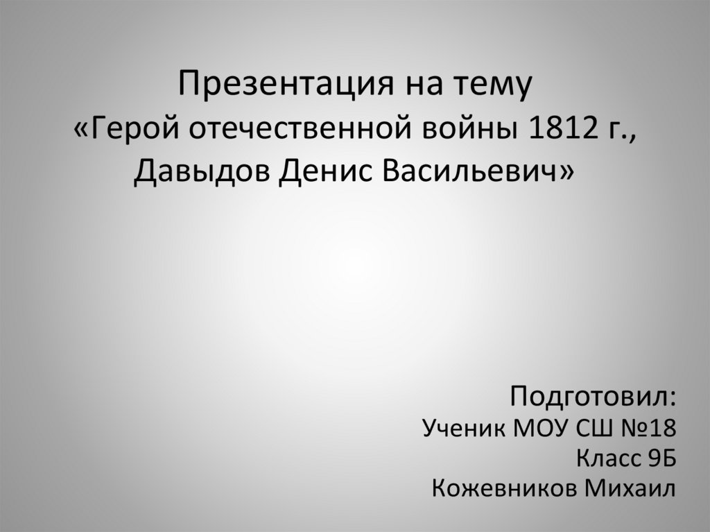 Д.В. Давыдов (от Кожевникова М.П., 9Б)