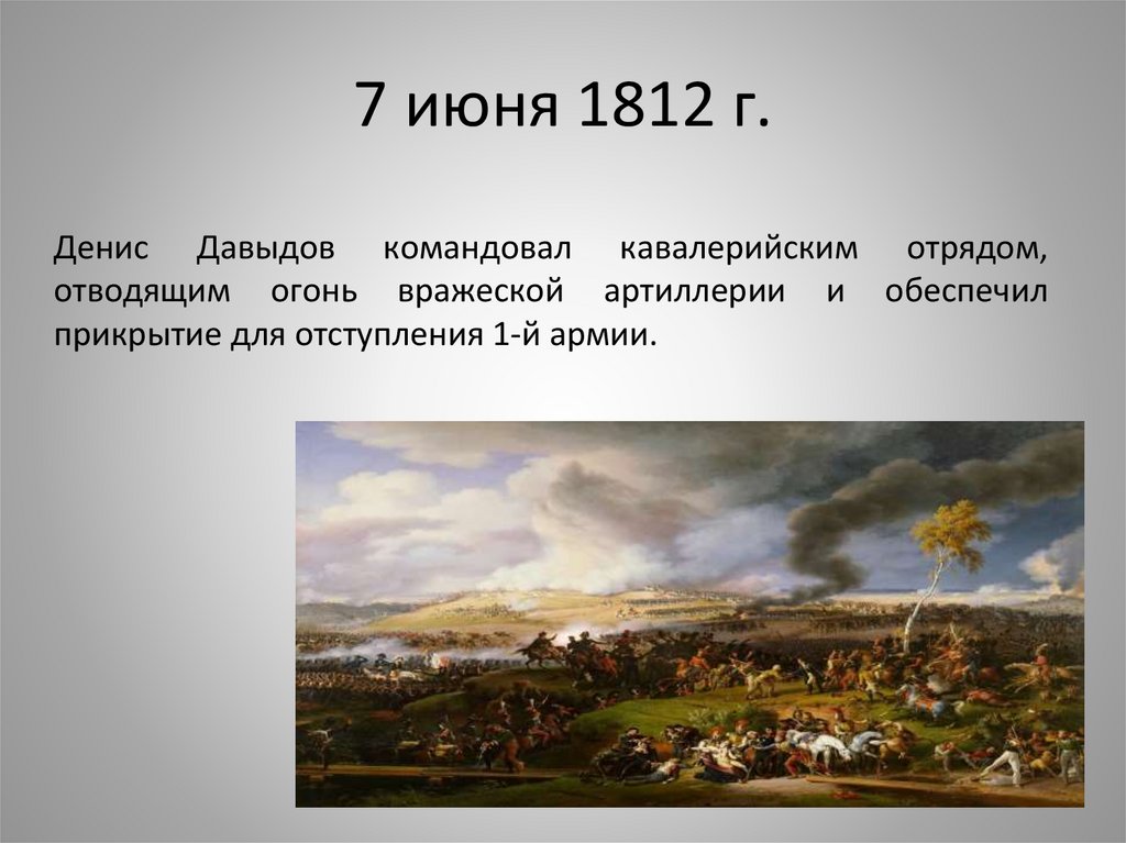 7 июня 1812 г.Денис Давыдов командовал кавалерийским отрядом,