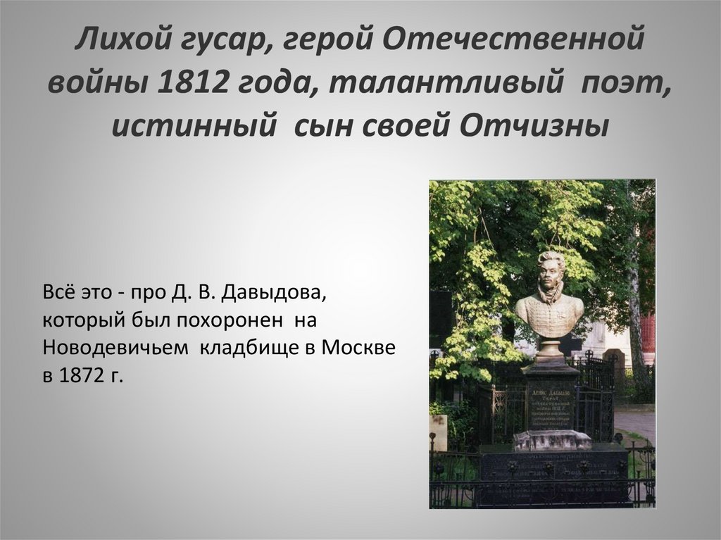 Лихой гусар, герой Отечественнойвойны 1812 года, талантливый поэт,