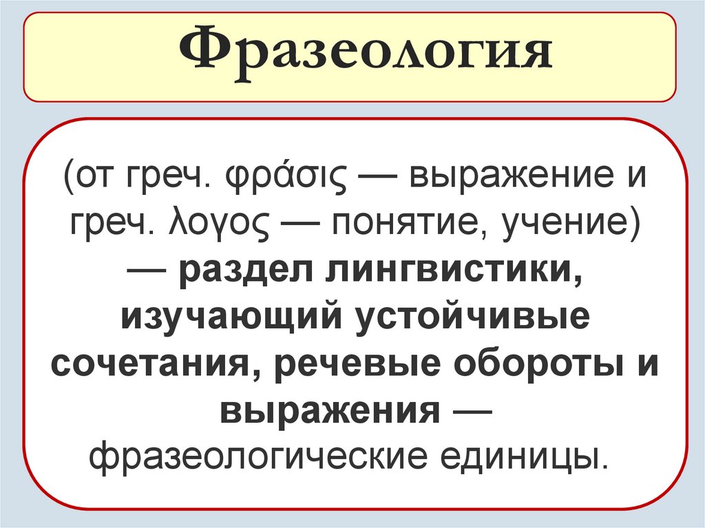 Фразеология(от греч. φράσις — выражение и