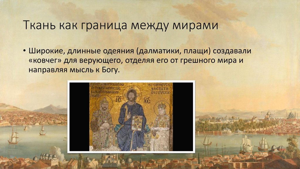 Ткань как граница между мирами• Широкие, длинные одеяния (далматики, плащи) создавали