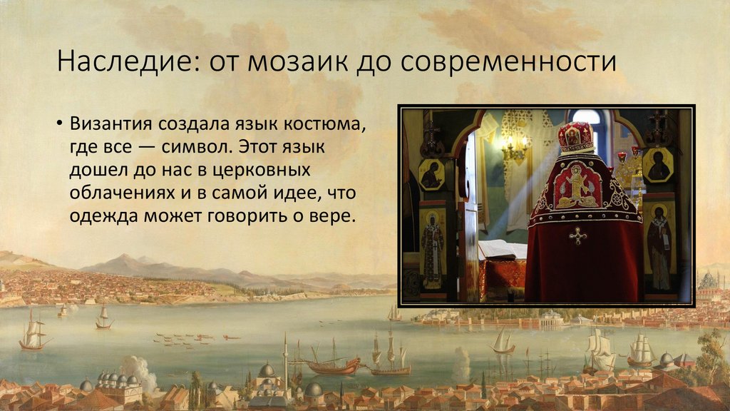 Наследие: от мозаик до современности• Византия создала язык костюма,