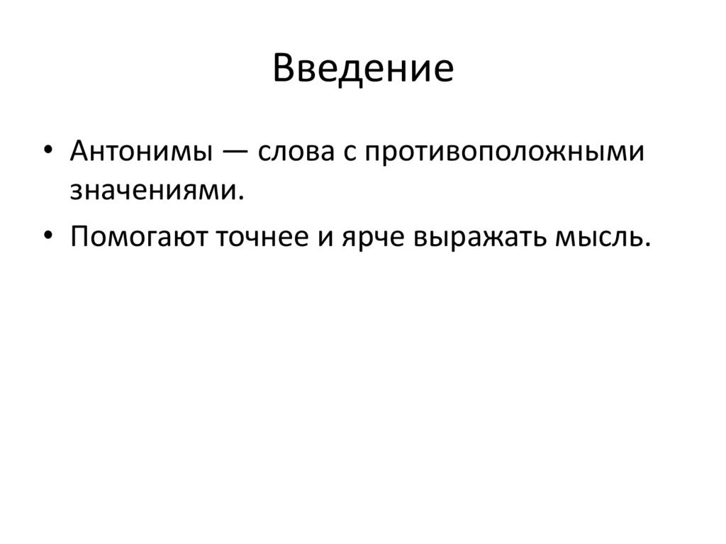 Введение• Антонимы — слова с противоположными