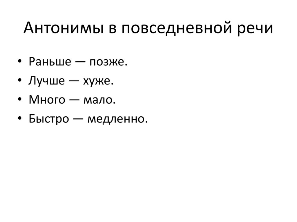 Антонимы в повседневной речи• Раньше — позже.